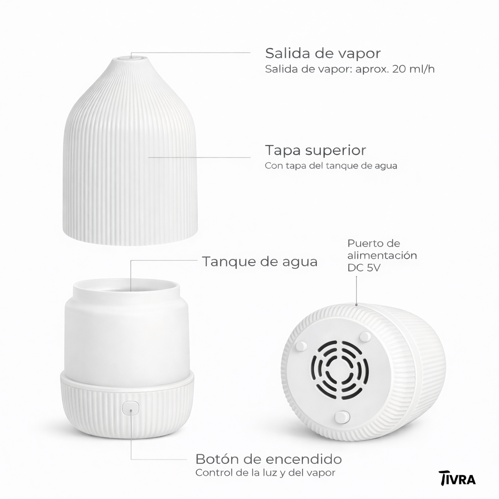 Nuestro humidificador TIVRA ayuda a regular la humedad del ambiente, creando una sensación de aire más fresco, liviano y agradable, ideal para descansar mejor desde la primera noche.